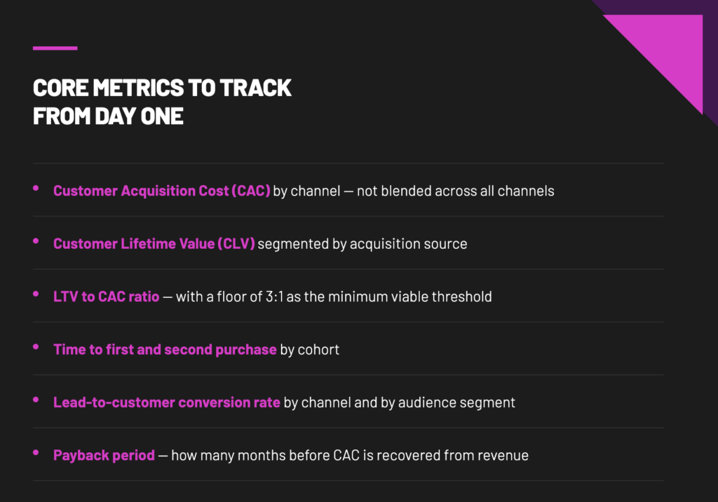At minimum, your stack needs: a CRM that captures lead source with precision, UTM parameters consistently applied across every paid and organic touchpoint, conversion tracking configured correctly in your ad platforms, and a reporting cadence that shows channel-level CAC and return on ad spend in one view. This is not sophisticated technology. It is the disciplined implementation of tools most teams already have.
